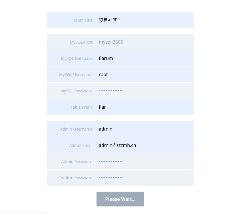 入门docker笔记 从零搭一个轻论坛系统 基于Flarum home 编辑时间 2019/10/16  ## 前言 这次希望用docker折腾一个轻社区的系统,语言随意,内存占用越低越好. 翻了一圈百度,发现最合适的是flarum github: https://github.com/mondediefr/docker-flarum#master docker hub: https://hub.docker.com/r/mondedie/docker-flarum ## 折腾 ### 说明 由于之前已有一个container运行着mysql5.7,不想跟着官方教程重新再开一个mysql,内存过于紧张,管理也费劲,所以是只单运行一个flarum,后来再用nginx反向代理到域名上访问.因此我用的方案会和官网的文档里的教程不同,但最终效果是一样的. 必填信息参考这2张表: **Environment variables** | Variable | Description | Type | Default value | | -------- | ----------- | ---- | ------------- | | **UID** | Flarum user id | *optional* | 991 | **GID** | Flarum group id | *optional* | 991 | **DEBUG** | Flarum debug mode | *optional* | false | **FORUM_URL** | Forum URL | **required** | none | **DB_HOST** | MariaDB instance ip/hostname | *optional* | mariadb | **DB_USER** | MariaDB database username | *optional* | flarum | **DB_NAME** | MariaDB database name | *optional* | flarum | **DB_PASS** | MariaDB database password | **required** | none | **DB_PREF** | Flarum tables prefix | *optional* | none | **DB_PORT** | MariaDB database port | *optional* | 3306 | **UPLOAD_MAX_SIZE** | The maximum size of an uploaded file | *optional* | 50M | **PHP_MEMORY_LIMIT** | PHP memory limit | *optional* | 128M | | **OPCACHE_MEMORY_LIMIT** | OPcache memory size in megabytes | *optional* | 128 | **LOG_TO_STDOUT** | Enable nginx and php error logs to stdout | *optional* | false | **GITHUB_TOKEN_AUTH** | github token to download private extensions | *optional* | false **Required environment variable for first installation** | Variable | Description | Type | Default value | | -------- | ----------- | ---- | ------------- | | **FLARUM_ADMIN_USER** | Name of your user admin | **required** | none | **FLARUM_ADMIN_PASS** | User admin password | **required** | none | **FLARUM_ADMIN_MAIL** | User admin adress mail | **required** | none | **FLARUM_TITLE** | Set a name of your flarum | *optional* | Docker-Flarum <br> <br> ### 安装 用默认安装最新版本的images即可 ```shell docker pull mondedie/docker-flarum:0.1.0-beta.10-stable ``` ### 运行 这里需要注意 1. 开始之前,必须先去新建一个数据库,例如falrum(utf8mb4) 2. `--link` 是关联到另一个name是mysql的container上,方便后期容器和容器之间连接,所以你必须提前有一个mysql的容器 2. 有5个`-e xxx` 分别是5个必填项(参考上门的两张表格),把密码改成你自己的 ```shell docker run -d -p 8888:8888\ --link mysql\ --name flarum\ -e FORUM_URL='http://localhost:8888'\ -e DB_PASS='root@1234'\ -e FLARUM_ADMIN_USER='admin'\ -e FLARUM_ADMIN_PASS='root@1234'\ -e FLARUM_ADMIN_MAIL='admin@zzzmh.cn'\ mondedie/docker-flarum:0.1.0-beta.10-stable ``` 这一步特别容易掉坑,建议在下一步之前,先检查一下是否启动成功,若出现ERROR,先百度解决之,再重新RUN试试 ```shell docker logs flarum # 正常的返回值的最后一句应该是(至少没有ERROR) [INFO] End of flarum installation ``` ### 访问 http://localhost:8888/  这里全部按实际情况填就好了 还有一些小坑  **1. MySql Host** 这里格式必须是:mysql:port 前面的是你的`mysql`容器的名字和之前run命令中的link保持一致,后面的`port`就是端口,默认3306 例如:mysql:3306 (一些情况下只写mysql也可以) 不能是localhost也不能是127.0.0.1 否则都会报错 **2. MySql Database** 他只能帮你建表,不能建库,所以这里填的库必须存在.例如我填的是falrum 那我就去新建一个数据库falrum utf8mb4 否则如果库不存在就会报错 或者库里已经有其他版本的表也会报错 <br> 安装成功会跳转到首页  <br> ## 优化 ### 环境部分 <br> --- 注意:这个镜像是没有bash的,要进入容器的话不能用 `docker exec -it flarum bash` 这个镜像有sh,所以应该是 `docker exec -it flarum sh` 效果和bash差不多一样 --- <br> 进入容器 ```shell docker exec -it flarum sh ``` 然后顺手给flarum 赋个权限 ```shell chmod -R 777 flarum cd flarum/app/ ``` 先安装composer阿里云镜像(否则会慢到奔溃) 网站:https://developer.aliyun.com/composer ```shell # 全局安装 composer config -g repo.packagist composer https://mirrors.aliyun.com/composer/ ``` ### 插件安装 安装简体中文扩展插件 ```shell # 简体中文支持 composer require csineneo/lang-simplified-chinese ``` 安装文件上传扩展插件 ```shell # 文件上传支持 composer require "flagrow/upload:*" ``` <br> ### 启用插件 再次访问管理后台的插件管理 http://localhost:8888/admin#/extensions 启用一下刚才安装的插件的`checkbox`  <br> 进入 ===> `基本管理 [Basics]` http://localhost:8888/admin#/basics 把默认语音改为 `[简体中文]`  要点`[保存]`生效 (再刷新应该就有中文支持了) <br> 进入 ===> `文件上传管理 [File Upload]`  <br> 最后还有一个邮箱设置 我这里就直接略过了 基本就参照网易邮箱或者qq邮箱的文档即可 --- <br> ## END 完成以上配置,一个基本款的flarum轻论坛docke版本就搞定了,最好再套一层nginx反向代理,例如套在二级域名上 bbs.yourwebsite.com 记得如果修改过访问域名,记得进入容器,找到config.php config.yml 一起修改掉 最后附上本次demo大致效果的截图  <br>  <br>  送人玫瑰,手留余香 赞赏 Wechat Pay Alipay 入门docker笔记 Docker 最佳的UI可视化工具 Portainer 入门docker笔记之 docker安装 mysql mongodb redis tomcat nginx