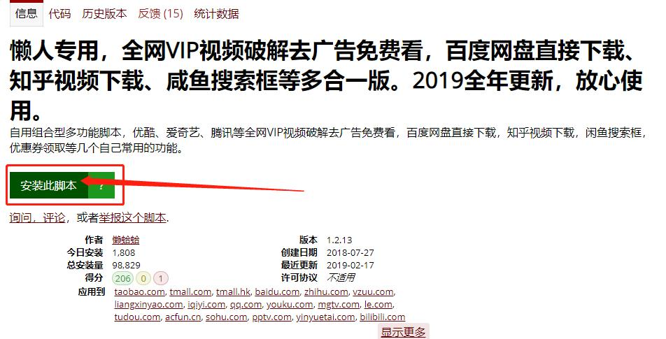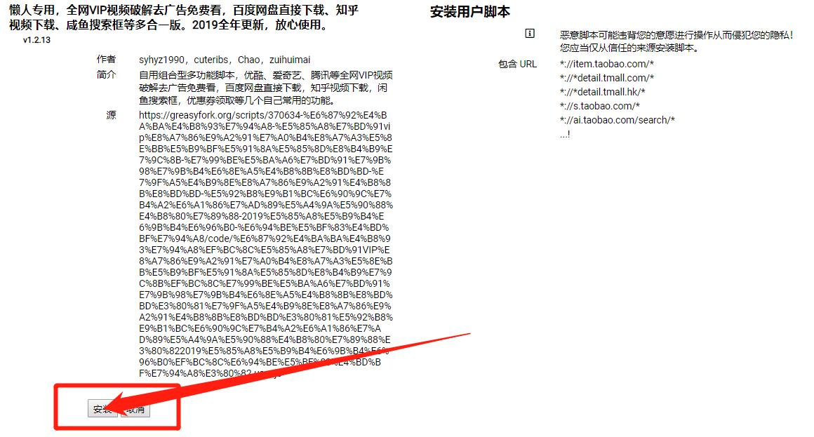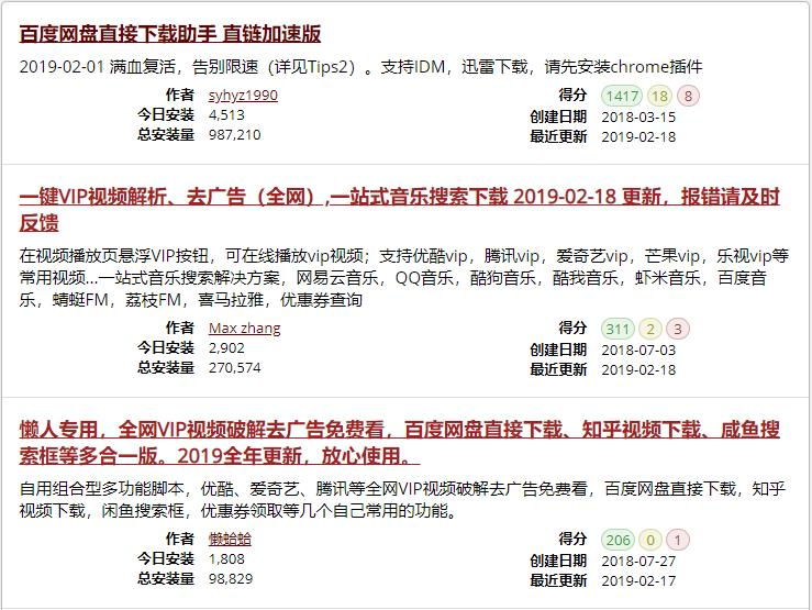 油猴脚本 入门教程 home 编辑时间 2019/05/01  #### 事前准备 下载和安装的教程我就不细说了,这里可以看之前写的文章。 下载地址: [https://chrome.zzzmh.cn/info?token=dhdgffkkebhmkfjojejmpbldmpobfkfo](https://chrome.zzzmh.cn/info?token=dhdgffkkebhmkfjojejmpbldmpobfkfo) 安装方法: [https://chrome.zzzmh.cn/help?token=setup](https://chrome.zzzmh.cn/help?token=setup) 如果要找更多的其他chrome扩展插件,推荐: [极简插件](https://chrome.zzzmh.cn/) #### 简介 ###### 官方简介是这样说的 > Tampermonkey(油猴脚本)是一款免费的浏览器扩展和最为流行的用户脚本管理器,它适用于 Chrome, Microsoft Edge, Safari, Opera Next, 和 Firefox。 虽然有些受支持的浏览器拥有原生的用户脚本支持,但 Tampermonkey(油猴脚本)将在您的用户脚本管理方面提供更多的便利。 它提供了诸如便捷脚本安装、自动更新检查、标签中的脚本运行状况速览、内置的编辑器等众多功能, 同时Tampermonkey还有可能正常运行原本并不兼容的脚本。 ###### 那么我个人的理解是 就是在指定url内,执行指定的JavaScript脚本 看似是很简单的功能。实际上可以实现无穷无尽的功能。 **开始之前,请确认您是Chrome浏览器,并且已经安装过Tampermonkey扩展,如果还没有,翻到本文开头下载。** #### 脚本安装 推荐地址: [https://greasyfork.org/zh-CN/scripts](https://greasyfork.org/zh-CN/scripts) 官网地址: [https://tampermonkey.net/scripts.php](https://tampermonkey.net/scripts.php) (慢)  用【懒人专用...】来举例,点进去,点【安装此脚本】  点【安装】  ###### 至此安装完成 很多人看到这里要问了,脚本如何使用的? 就和简介里说的一样,到了指定的URL会自动触发。 具体用法在脚本下载的页面会有详情介绍。 #### 脚本管理 安装完以后想看下装过哪些? **右击** chrome右上角 【油猴脚本】图标 , 选择【管理面板】  到管理面板就可以管理装过的插件,删除,更新,自定义修改都可以  #### END 入门教程就到这里了 其他进阶功能您可以自己找更多的高级的脚本来实现。 要找更多chrome扩展插件: [极简插件](https://chrome.zzzmh.cn/) 送人玫瑰,手留余香 赞赏 Wechat Pay Alipay 写了个开源项目 Nginx 图形化监控控制台系统 基于JSP + AmazeUI Nginx 可视化!配置监控一条龙!Nginx-GUI入门