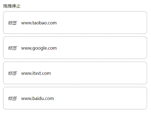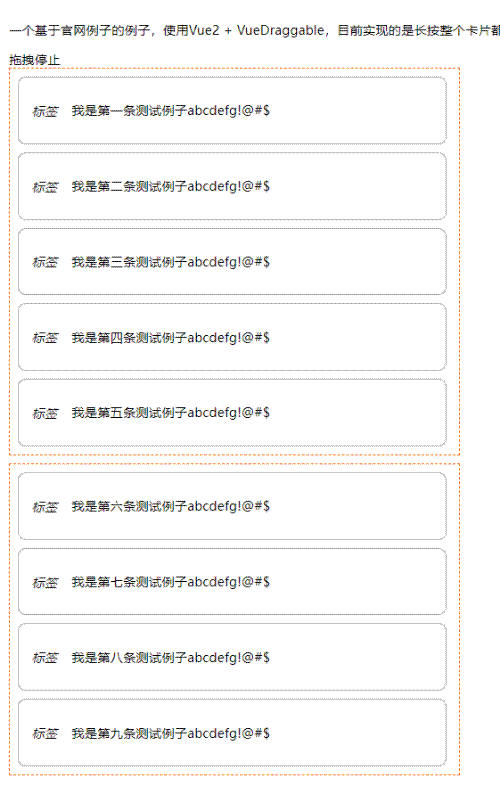 Vue Draggable 入门 网页列表拖动实现排序 home 编辑时间 2024/05/17  <br><br> ## 前言 最近打算给 [极简导航](https://nav.zzzmh.cn) 的配置收藏页面加一个拖动功能,很久之前用过一次Vue Draggable,最近搞忘了,再复习一下,顺便写个笔记 基于 `VUE2` `Sortablejs` `Vue.Draggable` <br><br> ## 折腾 直接上代码 一个最简单的demo ```html <!DOCTYPE html> <html lang="zh-CN"> <head> <meta charset="utf-8"/> <title>vue.draggable例子 1</title> <meta name="viewport" content="width=device-width, initial-scale=1.0, maximum-scale=1.0, minimum-scale=1.0, user-scalable=no, minimal-ui"> <script src="//cdnjs.cloudflare.com/ajax/libs/vue/2.5.2/vue.min.js"></script> <script src="//cdn.jsdelivr.net/npm/sortablejs@1.8.4/Sortable.min.js"></script> <script src="//cdnjs.cloudflare.com/ajax/libs/Vue.Draggable/2.20.0/vuedraggable.umd.min.js"></script> <style scoped> body { user-select: none; } .item { height: 50px; width: 500px; border: #acacac solid 1px; border-radius: 10px; display: flex; align-items: center; padding: 16px; margin: 10px 0; } .item i { cursor: move; width: 50px; height: 20px; } .item i:hover { cursor: move; } </style> </head> <body style="padding:10px;"> <div id="app"> <p> 一个基于官网例子的例子,使用Vue2 + VueDraggable,目前实现的是长按整个卡片都会拖动成功 </p> <div>{{drag ? '拖拽中' : '拖拽停止'}}</div> <draggable v-model="myArray" chosen-class="chosen" force-fallback="true" group="people" animation="200" :disabled="false"> <transition-group> <div class="item" v-for="element in myArray" :key="element.id"> <i>标签</i> <span>{{element.name}}</span> </div> </transition-group> </draggable> </div> <script> Vue.component('vuedraggable', window.vuedraggable) const app = new Vue({ el: '#app', components: { vuedraggable: window.vuedraggable,//当前页面注册组件 }, data() { return { drag: false, myArray: [ {id: 1, name: '我是第一条测试例子abcdefg!@#$'}, {id: 2, name: '我是第二条测试例子abcdefg!@#$'}, {id: 3, name: '我是第三条测试例子abcdefg!@#$'}, {id: 4, name: '我是第四条测试例子abcdefg!@#$'}, {id: 5, name: '我是第五条测试例子abcdefg!@#$'}, ] }; }, methods: { } }); </script> </body> </html> ``` 效果演示  这里有个小问题,在正式项目中,整个卡片长按拖动,可能会误操作。目标是希望实现,用户长按指定标签实现拖动,并且可以在多组数据之间来回拖动。 这里我参考了一下官方例子 https://sortablejs.github.io/Vue.Draggable/#/handle https://github.com/SortableJS/Vue.Draggable/blob/master/example/components/handle.vue 修改后的代码如下 ```html <!DOCTYPE html> <html lang="zh-CN"> <head> <meta charset="utf-8"/> <title>vue.draggable例子 1</title> <meta name="viewport" content="width=device-width, initial-scale=1.0, maximum-scale=1.0, minimum-scale=1.0, user-scalable=no, minimal-ui"> <script src="//cdnjs.cloudflare.com/ajax/libs/vue/2.5.2/vue.min.js"></script> <script src="//cdn.jsdelivr.net/npm/sortablejs@1.8.4/Sortable.min.js"></script> <script src="//cdnjs.cloudflare.com/ajax/libs/Vue.Draggable/2.20.0/vuedraggable.umd.min.js"></script> <style scoped> body { user-select: none; } .item { height: 50px; width: 500px; border: #acacac solid 1px; border-radius: 10px; display: flex; align-items: center; padding: 16px; margin: 10px 0; } .item i { cursor: move; width: 50px; height: 20px; } .item i:hover { cursor: move; } .draggable{ border: #ff6600 dashed 1px; width: 100%; margin-bottom: 10px; } </style> </head> <body style="padding:10px;"> <div id="app"> <p> 一个基于官网例子的例子,使用Vue2 + VueDraggable,目前实现的是长按整个卡片都会拖动成功 </p> <div>{{drag ? '拖拽中' : '拖拽停止'}}</div> <draggable class="draggable" v-model="myArray1" chosen-class="chosen" force-fallback="true" group="people" animation="200" handle=".handle"> <transition-group> <div class="item" v-for="element in myArray1" :key="element.id"> <i class="handle">标签</i> <span>{{element.name}}</span> </div> </transition-group> </draggable> <draggable class="draggable" v-model="myArray2" chosen-class="chosen" force-fallback="true" group="people" animation="200" handle=".handle"> <transition-group> <div class="item" v-for="element in myArray2" :key="element.id"> <i class="handle">标签</i> <span>{{element.name}}</span> </div> </transition-group> </draggable> </div> <script> Vue.component('vuedraggable', window.vuedraggable) const app = new Vue({ el: '#app', components: { vuedraggable: window.vuedraggable,//当前页面注册组件 }, data() { return { drag: false, myArray1: [ {id: 1, name: '我是第一条测试例子abcdefg!@#$'}, {id: 2, name: '我是第二条测试例子abcdefg!@#$'}, {id: 3, name: '我是第三条测试例子abcdefg!@#$'}, {id: 4, name: '我是第四条测试例子abcdefg!@#$'}, {id: 5, name: '我是第五条测试例子abcdefg!@#$'}, ], myArray2: [ {id: 6, name: '我是第六条测试例子abcdefg!@#$'}, {id: 7, name: '我是第七条测试例子abcdefg!@#$'}, {id: 8, name: '我是第八条测试例子abcdefg!@#$'}, {id: 9, name: '我是第九条测试例子abcdefg!@#$'}, ] }; }, methods: { } }); </script> </body> </html> ``` 效果演示  <br><br> ## END 由于GiteePage停止提供服务,无法给出线上测试地址,建议直接用官方例子测试 [https://sortablejs.github.io/Vue.Draggable/#/handle](https://sortablejs.github.io/Vue.Draggable/#/handle) 本例子源码 [https://gitee.com/zzzmhcn/vue-draggable-demo](https://gitee.com/zzzmhcn/vue-draggable-demo) 送人玫瑰,手留余香 赞赏 Wechat Pay Alipay 2024 Java STMP 发送邮件工具类代码 支持腾讯/网易企业邮箱 uni-app 入门笔记 HBuilderX Vue3 开发微信小程序