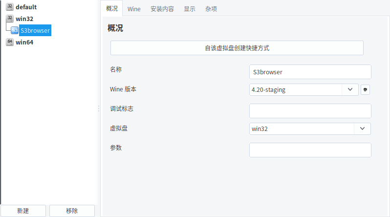 Linux Deepin 下搞定绝大部分难装的windows 应用程序安装 home 编辑时间 2019/11/28  ## 背景 `Linux` 下应用程序少是个老生常谈问题,一般国外软件如`Chrome` `Firefox` `Jetbrains全家桶` `Eclipse` 等都一定会有`Linux`版本。但国内`Linux`软件生态就略显惨淡了。长期使用Linux作为主力机系统的话,不得不研究一套能在`Linux`下安装Windows应用程序的方案。 前篇已经介绍了 `Linux Deepin` 下,安装绝大部分`Windows`应用安装程序`exe`的方案。 链接: [https://leanote.zzzmh.cn/blog/post/5dc1195916199b0467002b87](https://leanote.zzzmh.cn/blog/post/5dc1195916199b0467002b87) 那么这个用`Deepin-wine`的方案 ,稍微还是有几个不完美的地方,一是`Wine`版本过低,导致同样的应用,安装成功率远不如新版,二是安装环境能力较差,例如我要安装`s3browser-8-5-9`,它环境依赖`.net4.0`。在`Deepin-wine`中要先安装环境,再安装程序,会非常非常非常难。反复测试发现几乎走不通。 不久之前还写过一篇关于`Play On Linux`的文章,内容是用`Play On Linux`安装最新版wine 32位&64位,再用wine装adobe air环境,再用air安装应用程序,成功的例子。 链接: [https://leanote.zzzmh.cn/blog/post/5d43a65716199b062f000121](https://leanote.zzzmh.cn/blog/post/5d43a65716199b062f000121) **那么本文的主旨就是,抛弃`Deepin-wine`,继续折腾`Play On Linux`,用他造一个能装任何`Windows APP`的环境** <br> ## 折腾 **开始折腾之前还是要说明一下** `Play On Linux`是一个免费软件,再加上他原本的用途是在Linux下玩Windows下的游戏。我们安装的又不是他列表里的程序。所以说,出错也非常正常。最坏的情况大不了删掉容器,从头再装一次。 ### 安装 Play On Linux 下载地址: [https://www.playonlinux.com/en/download.html](https://www.playonlinux.com/en/download.html) 直接下载适合的版本,自行安装。  方法过于简单,直接略过 <br> --- ### 安装 Wine 4.20 32位 & 64位 最新版本 由于首次打开`Play On Linux`是不包含Wine环境的,需要自己选择一个Wine版本,下载,然后创建一套环境。原理类似以前Windows里的沙盒。 **这里需要强调一个重点** 除非有特殊需求必须用64位环境,否则强烈推荐32位。当然也可以选择分别造2个容器32和64都并存。理由是:反复测试后发现,32位的官方提供的环境依赖很全,用官方提供依赖要比自己去下载安装依赖的成功率高出许多。 具体的安装方法,之[前的文章](https://leanote.zzzmh.cn/blog/post/5d43a65716199b062f000121)里已经有了,简单再复述一下 `菜单栏的设置` - `管理Wine版本` - `Wine 版本(x86)` 或者 `Wine 版本(amd64)` ,在左边栏里,选择最新最新最新的,用中间的箭头点到右边,就会开始漫长的下载安装的过程了。  <br> --- ### 创建一个容器 在他的里面管这个叫虚拟盘,我觉得叫容器更合适。 具体是在 `配置(工具栏的大齿轮)` - `新建` 之后的Wine版本选择刚才下的最新版本即可  <br> --- ### 安装 .NET 4.0 环境依赖 这一步出现一个分歧 如果是32位的环境,是推荐使用官方提供的环境依赖进行安装 如果是64位的环境,只能选择自己下载环境依赖安装包安装 具体过程都列举出来了 <br> #### 32位 安装依赖方法 这里提供了相当多的依赖,我们这里必须要用到的是 .net4.0 ,之前还用过adobe air 总之直装官方提供的依赖,效果稳定性都是最好的,基本可以一步到位 首页上选择`安装一个程序` 弹出的框不要选里面的程序 选左下角的`安装未在列表中的程序` 即可进入手动安装  选择`编辑或更新现有的安装程序`  勾选`显示虚拟盘` 选择刚创建的容器,我起名是`win32`  关键就是这一步,要选择安装库,也就可以从官方已经确认稳定的库中安装需要的依赖  选择32位  根据需要安装32位依赖,不是越多越好,只装自己需要的  <br> --- #### 64位 安装依赖方法 首先自己去下载一个.net4.0的exe的安装程序包 (后面安装其他exe应用程序的步骤,也可以参考这个步骤) 首页上选择`安装一个程序` 弹出的框不要选里面的程序 选左下角的`安装未在列表中的程序` 即可进入手动安装  选择`编辑或更新现有的安装程序`  勾选`显示虚拟盘` 选择刚创建的容器,我起名是`win64`  中间一步直接略过,点下一步 然后勾选64位应用程序  接下来选择你要安装的包,选择下一步 后续的安装流程就和windows 一摸一样了  --- ### 正式安装应用程序 步骤可以参考前文,我就不重复了,简单展示一下结果吧 --- #### 微信 deepin其实已经有wine的不错的微信了,这里拿微信测试主要适用于可能想折腾新版、测试分屏、或者非deepin的linux桌面端的同学  --- #### S3brower 这个就是必须.net 4.0依赖才能安装运行的程序,在这个容器里稳定的一批  --- #### Q&A 可能会有人要问就是安装完的程序去哪找 理论上每次安装结束都会有创建快捷方式的提示 如果错过的话,可以手动再去创建一次 在首页的工具栏点 `配置(大齿轮)` 选`自该虚拟机创建快捷方式`  ## END 最后说下遇到bug如何自救 用`Play On Linux`遇到bug可以说是必然的 能做的就是,多下几个版本的wine,分别建单独的容器 分别测试同一个安装包不同环境的效果 以及调试模式下启动应用程序 查看输出日志,看不懂百度 送人玫瑰,手留余香 赞赏 Wechat Pay Alipay 解决 Manjaro / Arch 环境下 蚂蚁笔记 Leanote 启动报错 Harfbuzz version too old 1.2.1 定期备份 Docker 中运行的 mysql、mongo、redis 的数据到宿主机