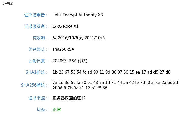 Nginx 配 Let's Encrypt HTTPS 证书 报 错误: 服务器缺少中间证书 问题解决 home 编辑时间 2020/04/08  ## 前言 期初是由于在`ios`系统出现`https`连接`ssl`握手时间过长 经过调查有网友说是ssl中间证书缺失 时间长 和 中间证书缺失 这两点是否存在关联目前还有待考证 不过目前发现 `Nginx` 配 `Let's Encrypt` 证书的确存在中间证书缺失问题 本文介绍如何解决这一问题 这里证书用的是 `Let's Encrypt` 通配符证书 服务端 `Nginx 1.16.0` ## 调查 首先检查 是否存在这一问题 检测地址: [https://www.myssl.cn/tools/check-server-cert.html](https://www.myssl.cn/tools/check-server-cert.html) 检测结果:  Nginx相关配置: ```nginx server { listen 443 ssl http2 default_server; server_name zzzmh.cn; ssl_certificate /root/ssl/fullchain.pem; ssl_certificate_key /root/ssl/privkey.pem; ssl_trusted_certificate /root/ssl/chain.pem; ... } ``` **关键问题是在 fullchain.pem** 根据调查 `Nginx` 不像是 `Apache` 有专门的参数配置中间证书 `Nginx` 需要全部配置在 `fullchain.pem` 中 顾正确的格式是分为三段 分别代表 服务器层 中间层 root层 ```shell -----BEGIN CERTIFICATE----- ... -----END CERTIFICATE----- -----BEGIN CERTIFICATE----- ... -----END CERTIFICATE----- -----BEGIN CERTIFICATE----- ... -----END CERTIFICATE----- ``` 而实际上一般 `Let's Encrypt` 生成的证书 `fullchain.pem` 默认都是两段 ```shell -----BEGIN CERTIFICATE----- ... -----END CERTIFICATE----- -----BEGIN CERTIFICATE----- ... -----END CERTIFICATE----- ``` ## 解决 其实具体缺失中间证书是不是一个问题, 有什么后果,都尚未可知。 只是抱着能解决就解决的心态去调查解决的。 首先先找到 `Let's Encrypt` 生成出证书的4个文件 ```shell cert.pem chain.pem fullchain.pem privkey.pem ``` 将 `cert.pem` 内容复制到这个地址解析 [https://www.myssl.cn/tools/downloadchain.html](https://www.myssl.cn/tools/downloadchain.html) 解析成功可以获得2个下载按钮 使用 `[点击下载中间证书文件]` 将下载到的文件中的 **`内容`** 复制到 `fullchain.pem` 的 **`两段内容的中间`** ,保存即可。 **(需要注意 `fullchain.pem` 格式要求极为严格 不能存在空行 空格等)** 最后重启nginx 问题解决 ```shell # 测试配置是否正常 nginx -t # 重新加载配置文件 nginx -s reload ``` 再次去到一开始检测的网址 检测结果:  ## END 送人玫瑰,手留余香 赞赏 Wechat Pay Alipay SpringBoot 2 Maven 新建多模块项目配置方法 Centos 7.7 从零安装部署生产环境 Docker Nginx JDK Tomcat Mysql Redis 等
